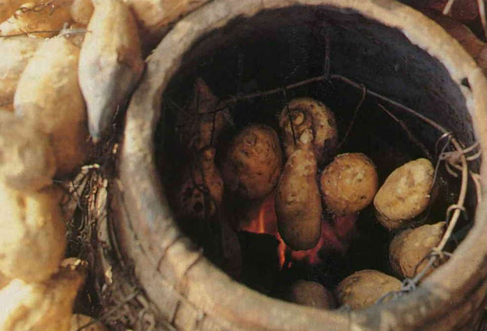 「焢蕃薯」是鄉間孩子最樂此不疲的「戶外活動」了。先堆起半圓形的土窯,裡面以乾木柴及稻草燃燒,至泥土焦黃,將蕃薯埋進土窯並敲碎它,約五分鐘,就可將已燜熟、鬆軟香甜的蕃薯取出食用。