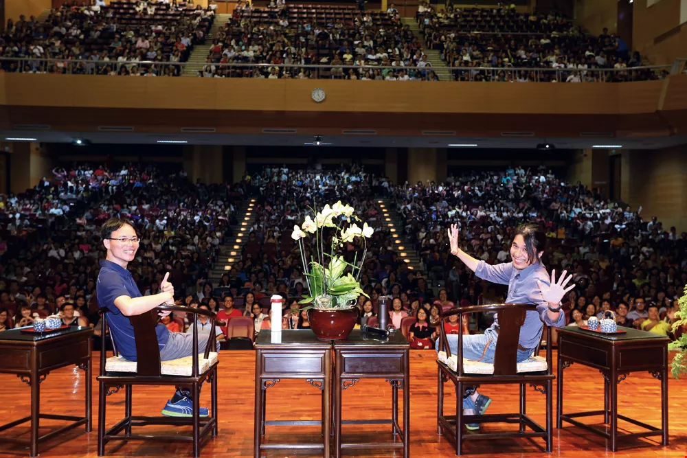 張輝誠(左)與葉丙成(右)主講的學思達vs. BTS翻轉教學自主研習,2,200名教師齊聚,展現思變的強烈企圖心。