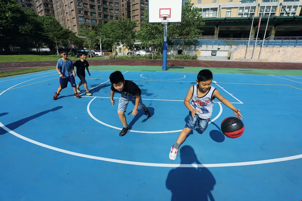新北市三峽區龍埔國小學生,上課專心學習,下課開心打球。