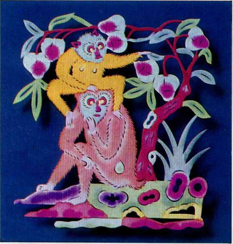 猴兒偷桃,是中國民間由來已久的典故。圖為剪紙作品。(卜華志)