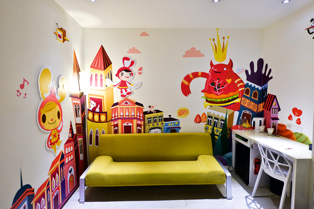 老品牌新驛旅店,經常提供館內空間讓本土新銳藝術家大玩跨界創意。圖為西門捷運店。