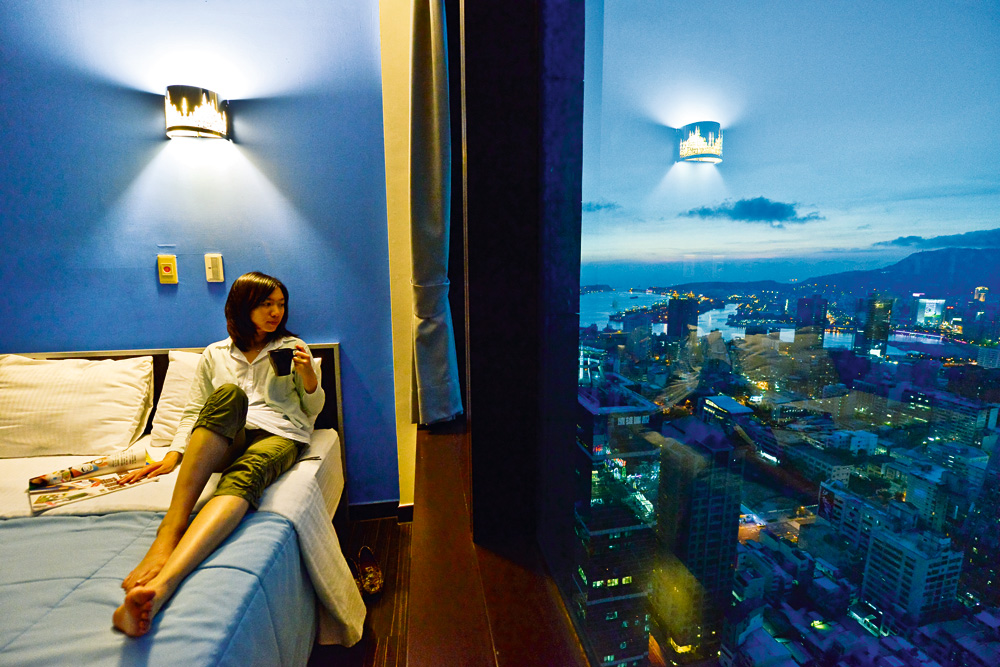 不論旅途歷經多少驚險刺激,旅館始終是守護旅人的忠實港灣。圖為可俯瞰高雄的八五空中城。