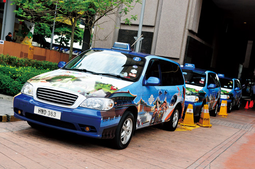 在上百輛計程車車身,印上宣傳台灣之美的台北101、故宮、夜市等插畫和照片。在車陣中「數大就是美」的效應下,大大提升了台灣的能見度。
