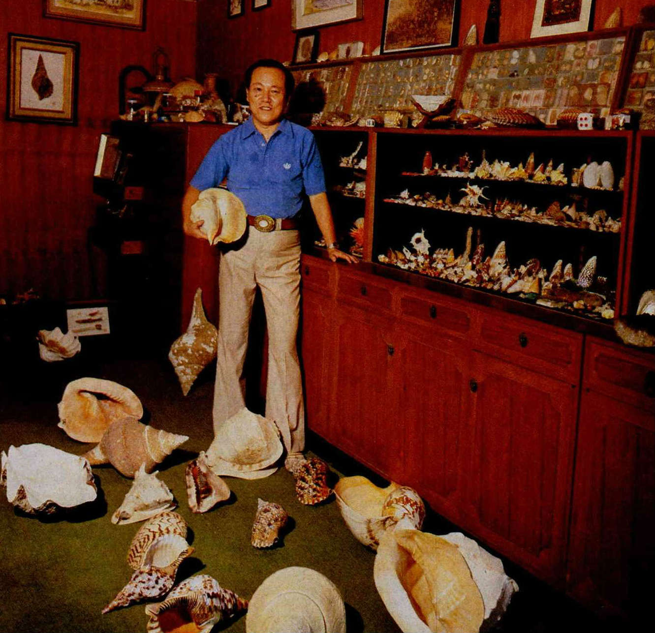 四十八歲的藍子樵,方面大耳,身材因事業有成而略顯發福,他一直把工作之餘的時間和精神都花在這些貝殼上。「收集貝殼也和集郵一樣,有一般性的收集和專題收集。」他說:「專題收集中,有人以種類區分,像專集海扇科、芋螺科、寶螺科、或骨螺科的。也有以地區來劃分,專門收集某一地區的貝殼。」