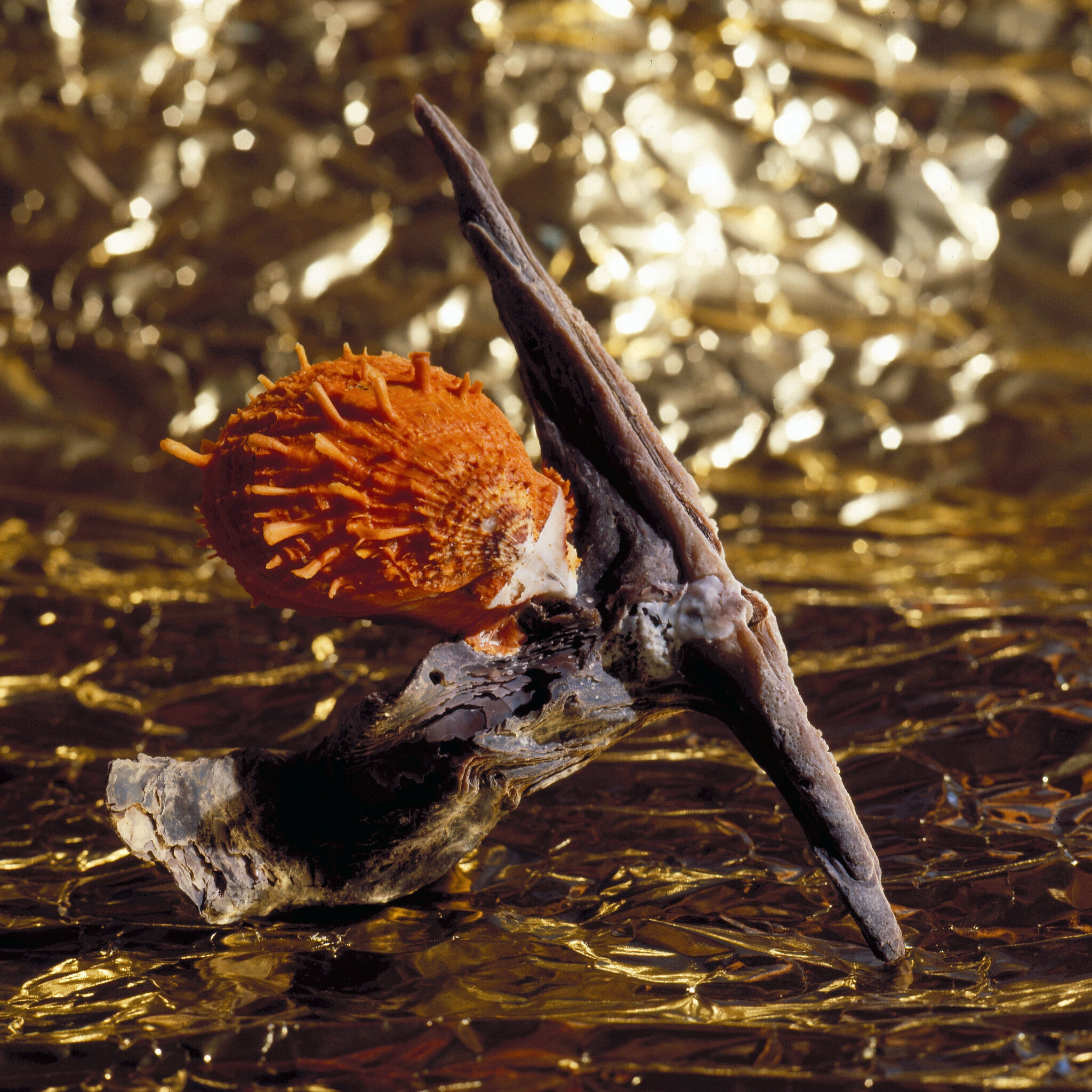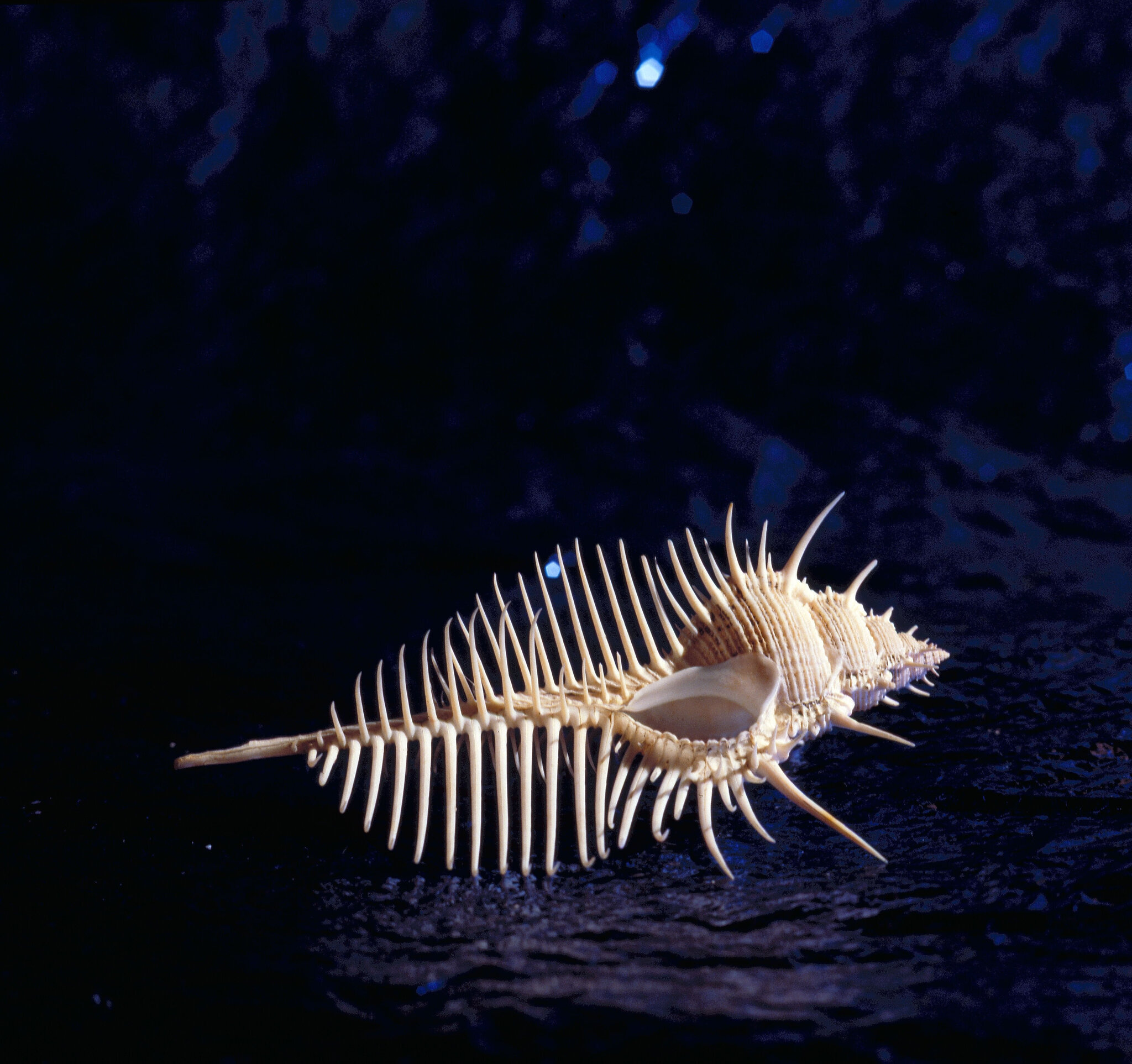 還有長兩排整齊的長刺、很像梳子的維納斯骨螺,產於新竹、台南、高雄、和澎湖附近的沙質海底。「相傳希臘女神維納斯就是用它來梳理她的秀髮。」