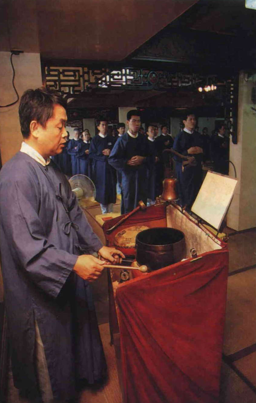 一襲藍袍,一卷經誥,天帝教信徒在不設神像的「光殿」上誦誥祈禱,為天下蒼生化劫。