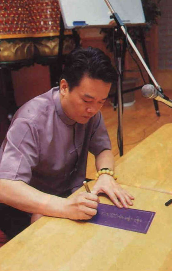 佛乘宗大緣精舍導師李善單手書九字禪「南無本師大自在王佛」,為弟子們消災解厄。