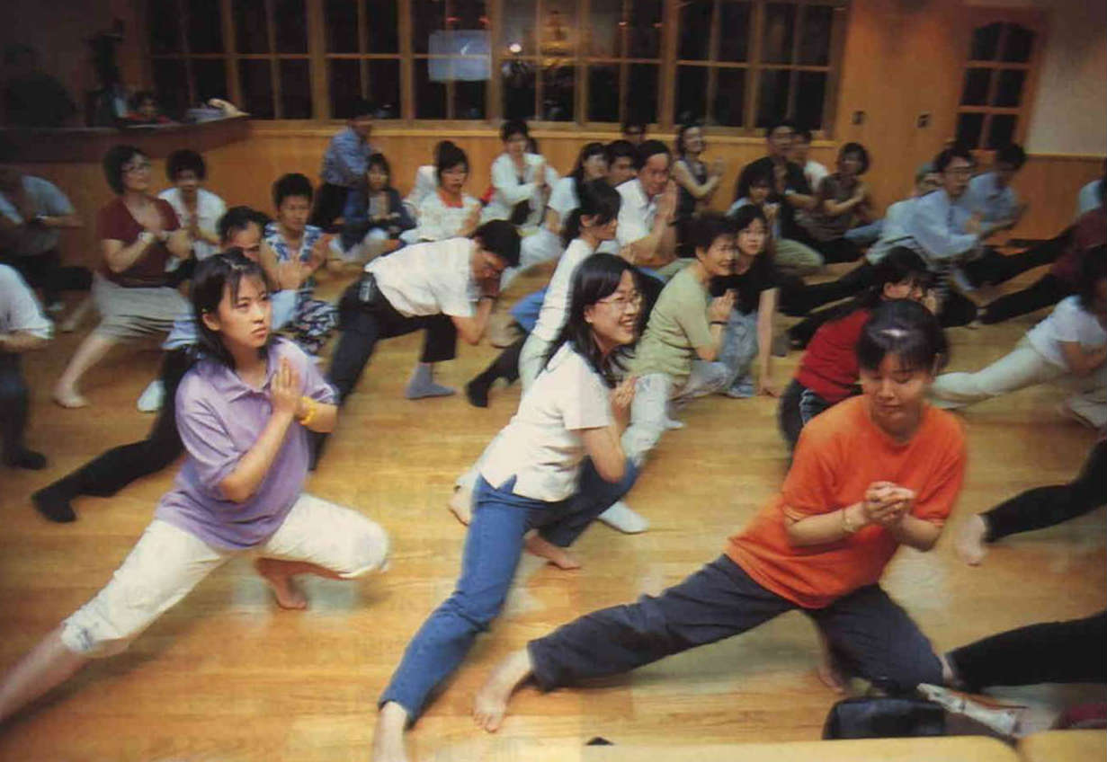 佛乘宗強調心理與生理功課並行,每堂課除了講解義理及打坐外,還有「動禪」課程。(林格立)