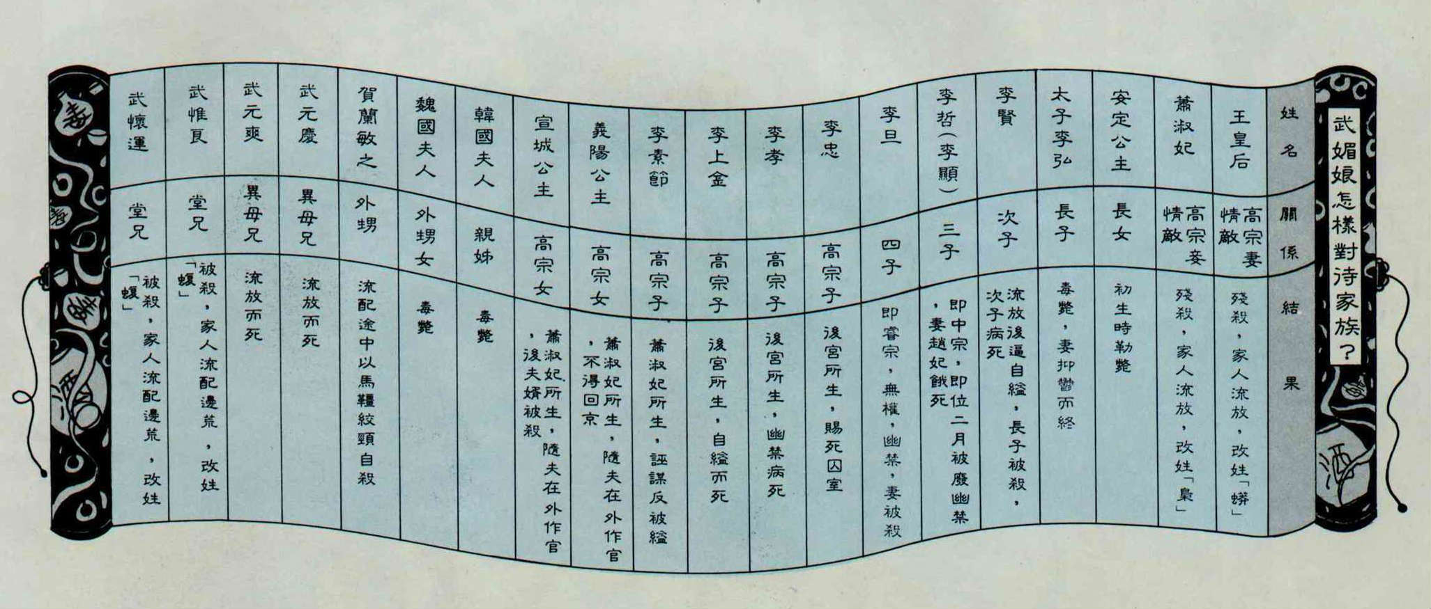 對待親生子女猶且如此,其他非親生子女,乃至武姓本家,就更得不到好下場了(見圖表)。