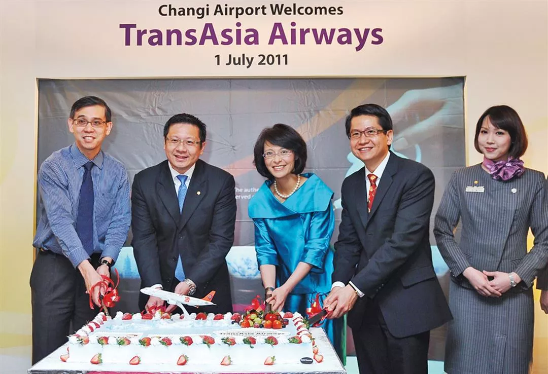 復興航空近幾年積極爭取航權。圖為2011年7月首航新加坡的慶祝典禮。
