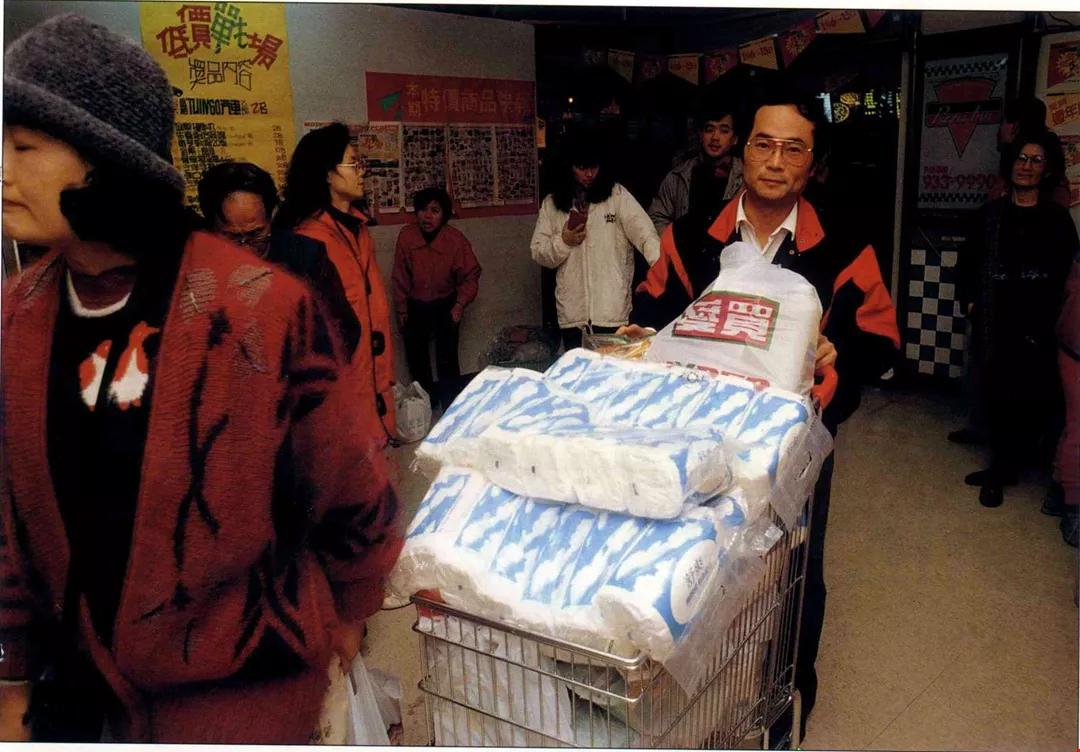 賣場外,為了超低特價、限時限量搶購的米和衛生紙,許多家庭主婦瑟縮地頂著寒風,從遠遠的巷道那端排起隊來,甚至有人每天去排一回呢。