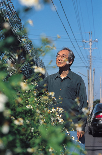 節氣雖已「大雪」,但苗栗縣公館鄉依然冬陽普照。作家李喬騎著腳踏車,引領我們進入巷弄內的居所;隔著一灣淺溪的稻田只剩一片土黃色稻頭,將遠處山巒襯托得益發鬱鬱青翠。