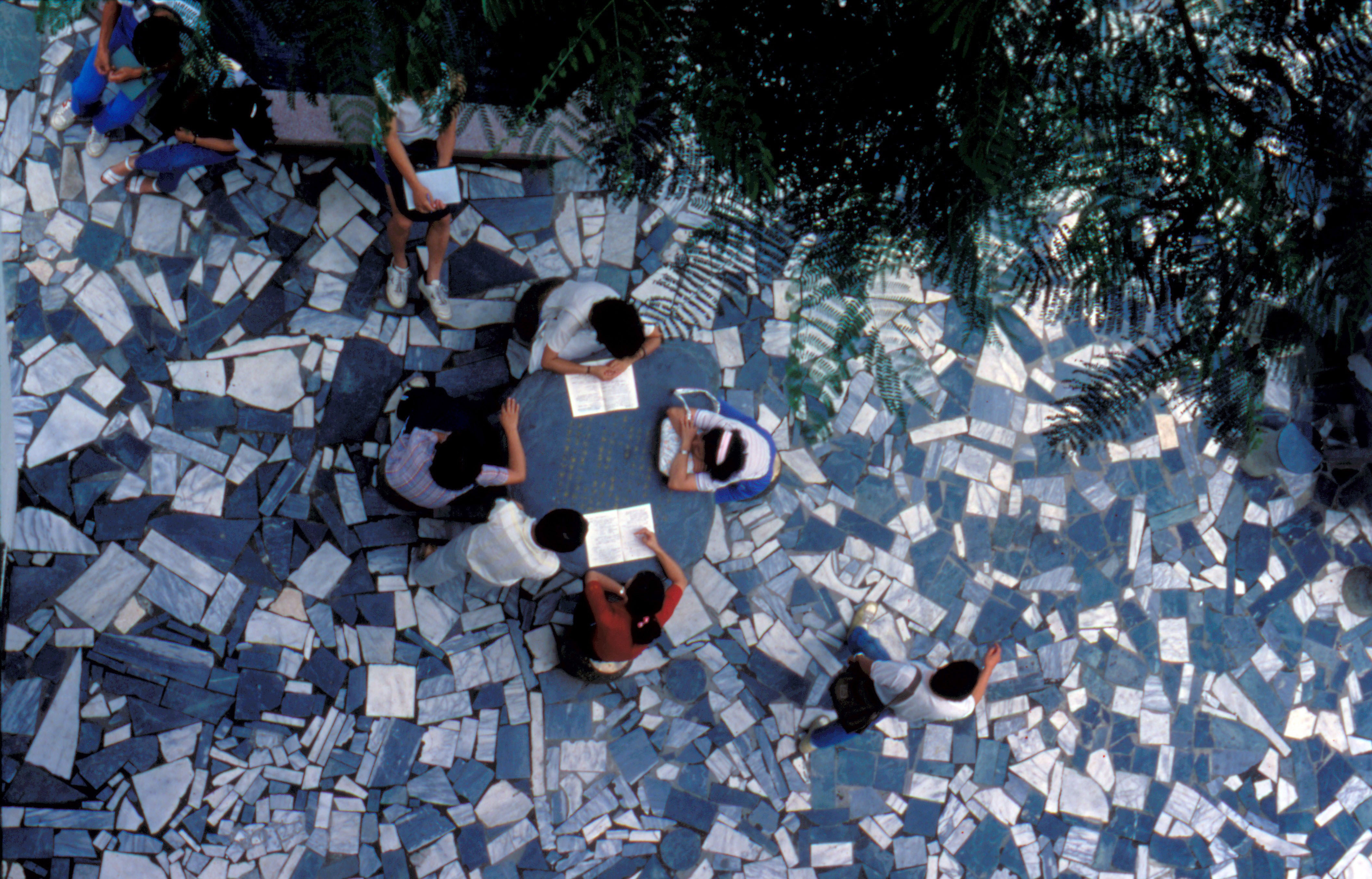 大理石步道與草藥叢是校園中最具特色的地方。(邱勝旺)