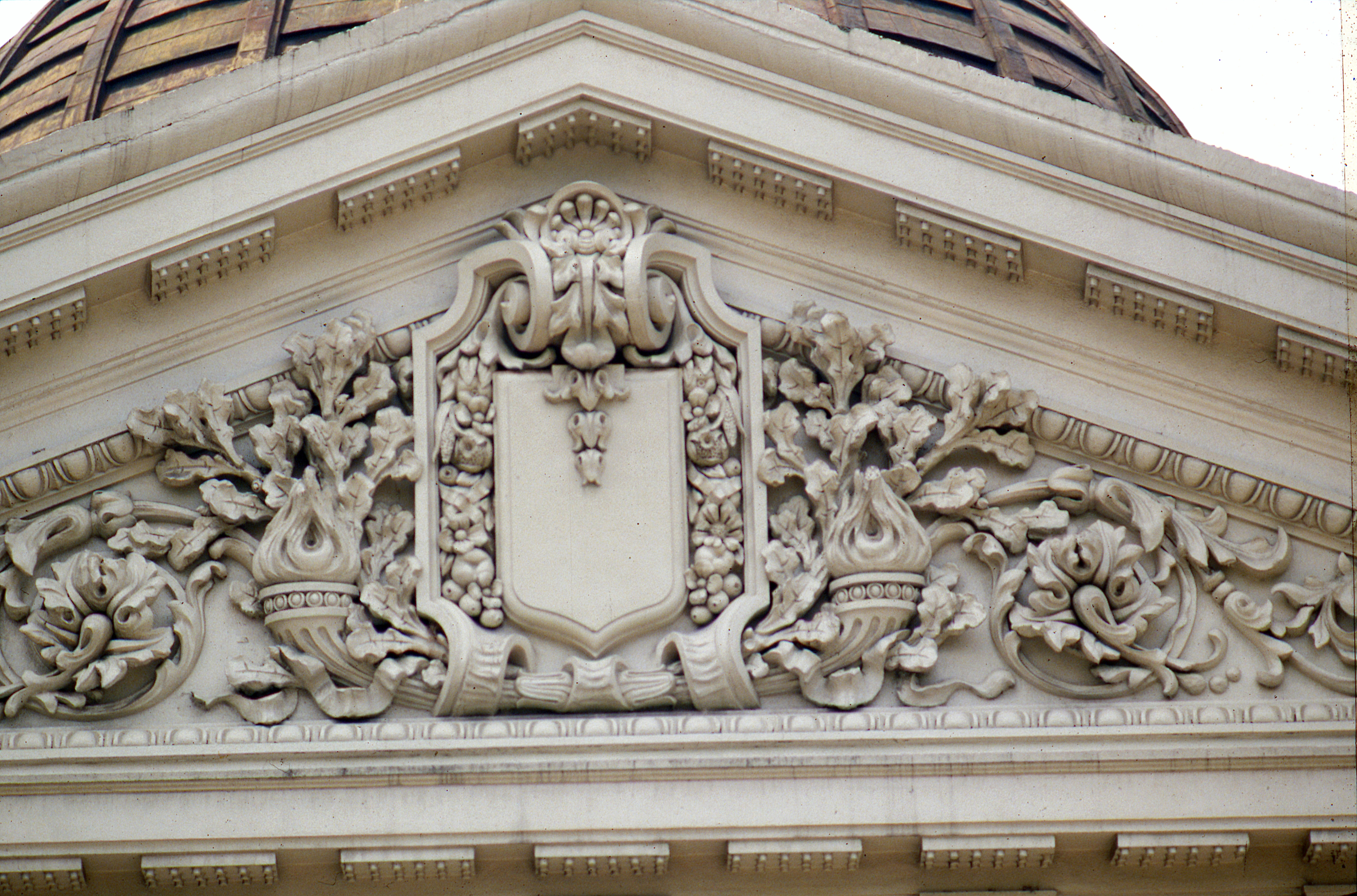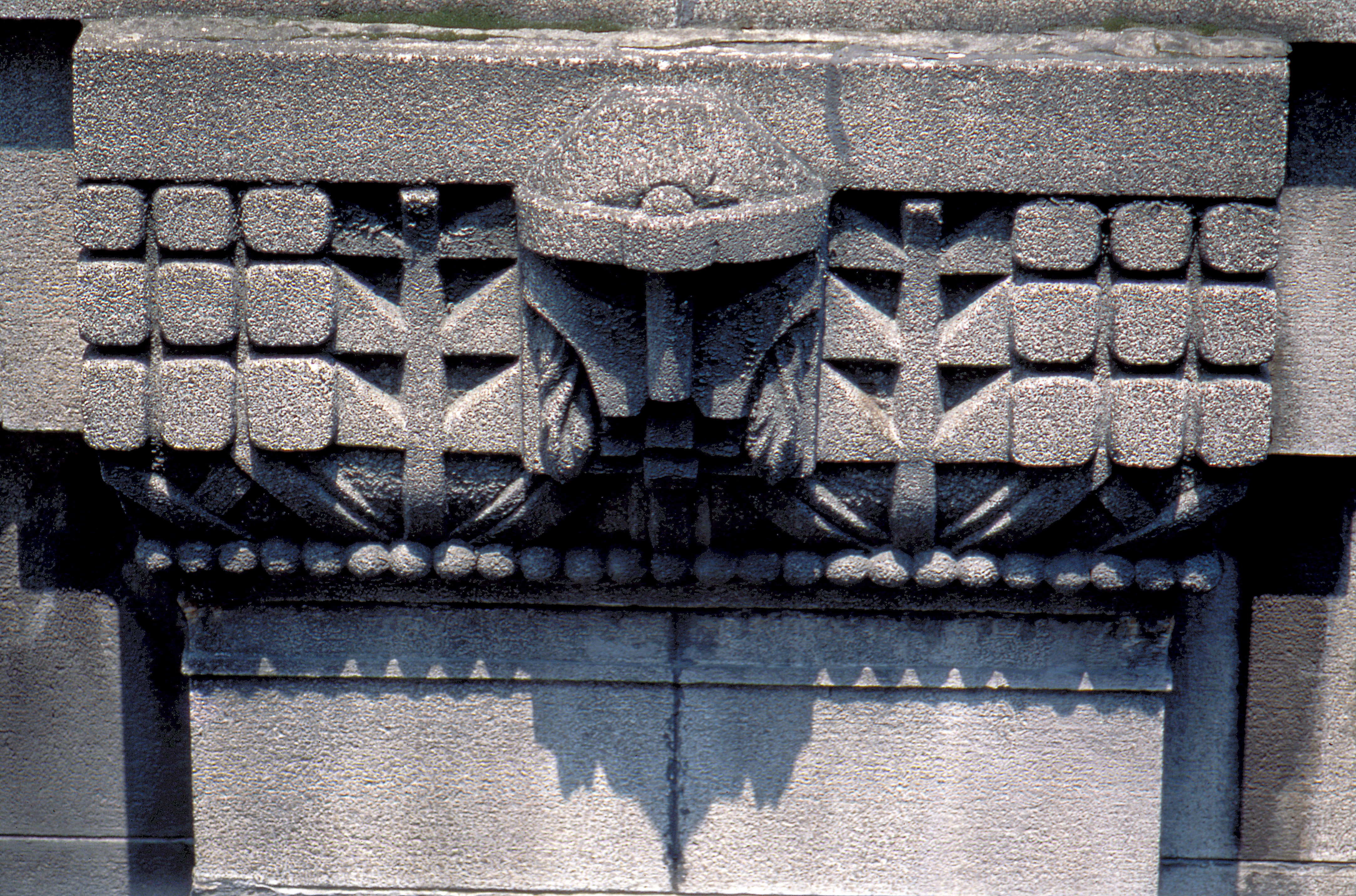 北歐風格的公賣局,正門頂上的山頭採半圓式,有緩衝後面尖塔突兀的作用,山頭上的雕花十分細緻,採用灌模的技巧,不落絲毫痕跡。它的入口沒被抬高,顯得平易近人,這或許是因為公賣事業多與百姓息息相關吧。(楊文卿)