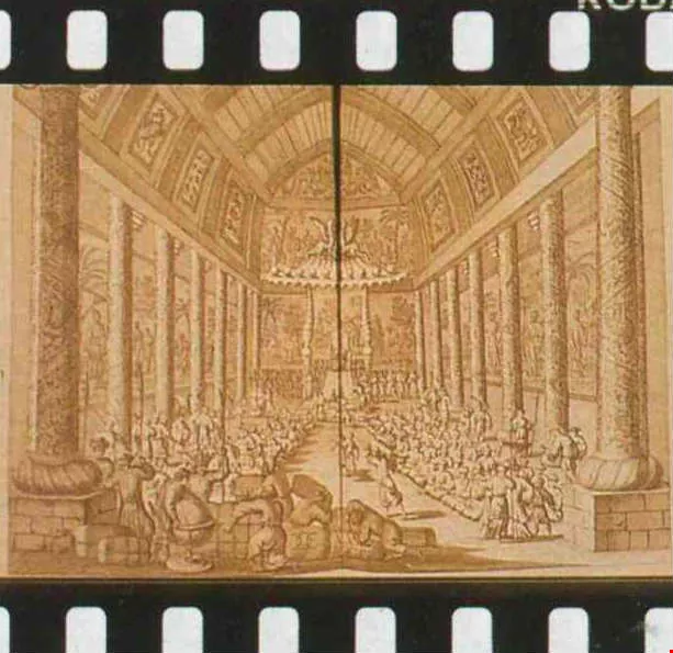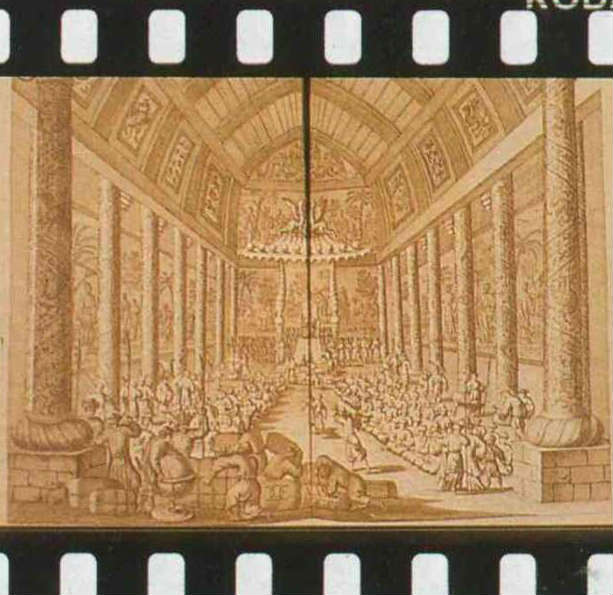 十七世紀以後,殖民官和商人親自到了中國。百聞不如一見,可也到底仍有疏漏。這位荷蘭駐華公使筆下充滿南洋風味的「中國宴會」,龍柱林立、百官屈膝,行禮如儀,只是皇宮的天花板……,肯定是忘了抬頭觀察,只好畫個西式天廷湊和(圖四)。