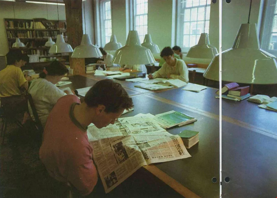 這是萊登大學漢學院圖書館。學生正在閱讀有關天安門血腥鎮壓的新聞。(鄭元慶/萊登漢學院提供)