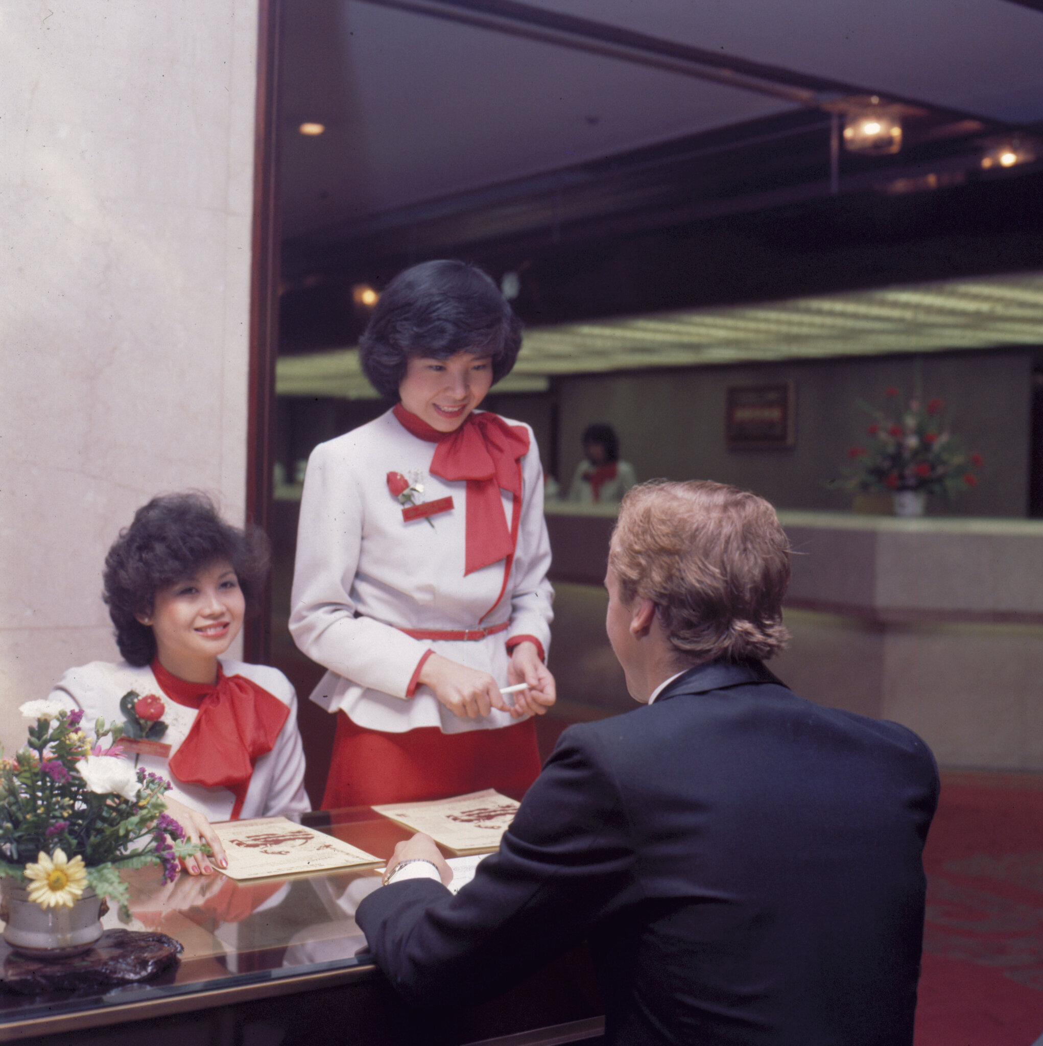 臺北來來飯店大廳接待員的制服,出自名服裝設計家王榕生之手:大紅絲質襯衫、翻紅領的白外套、窄裙、紅色細腰帶,領口斜繫絲質鮮紅領結,給人明麗、幹練之感。也因為她們經常接待來自世界各地的觀光客,因此重視制服的時代感,更換也極頻繁。