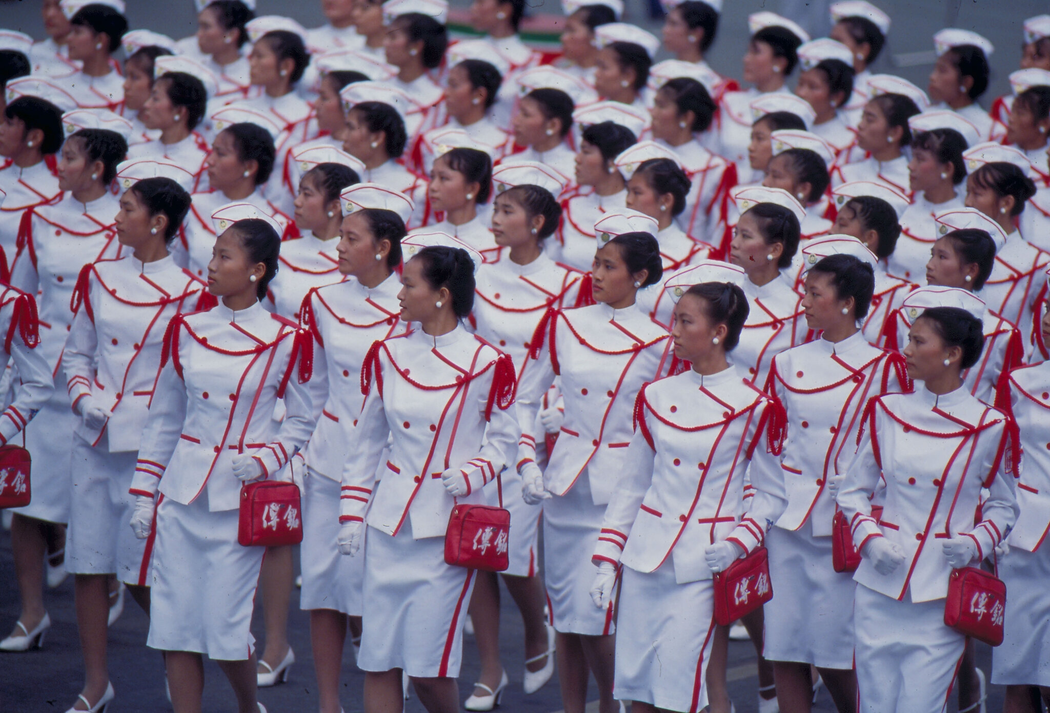 圖6:銘傳商專特為國慶閱兵制作的女生制服。(鐘永和)