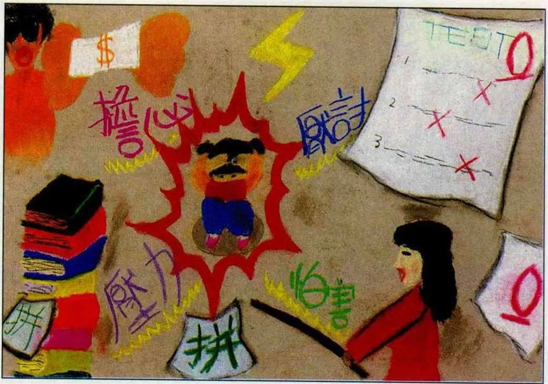 面對壓力,孩子們或許不擅用言辭表達,但藉著畫筆,他們的憂與懼卻躍然紙上。