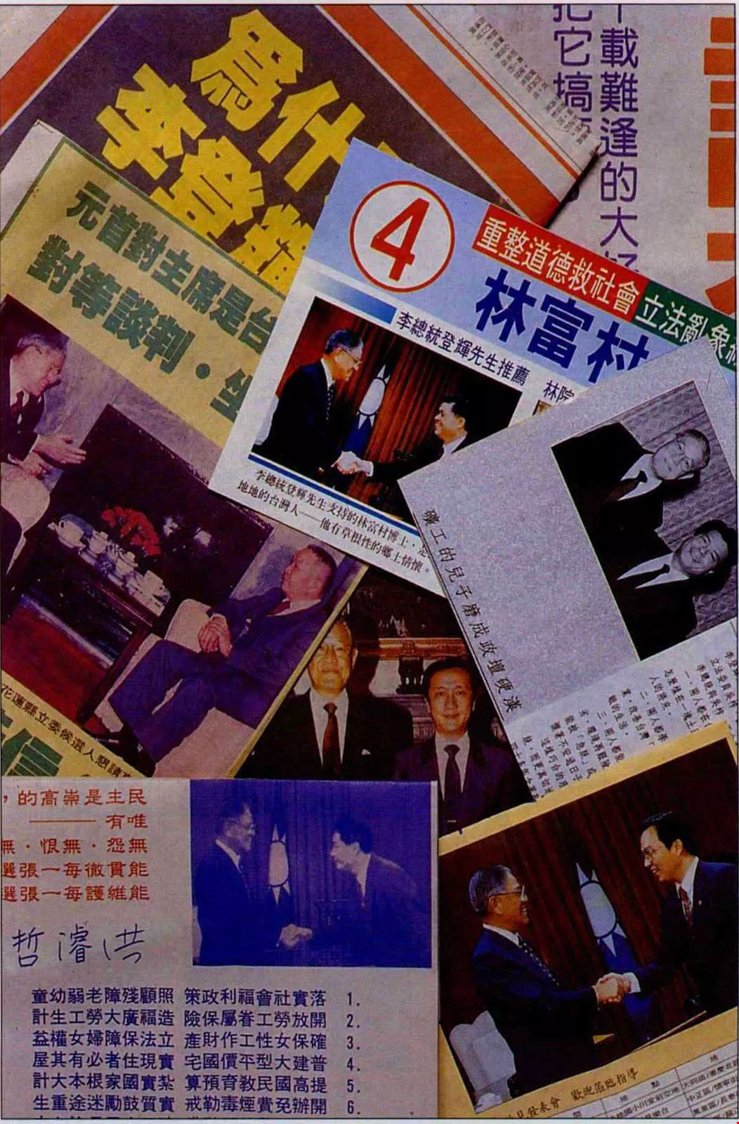 民進黨在電視競選廣告影片中推衍出「支持民進黨才是支持李登輝改革」的結論;此外,在花蓮參選的民進黨前主席黃信介,也把他和李總統的合照用在文宣品上,希望以「王見王」的訴求,打動選民的心。