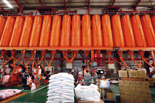 聯米企業(中興米)去年出口日本360公噸,創台灣米單筆銷日最大訂單紀錄。圖為聯米廠內包裝區一景。
