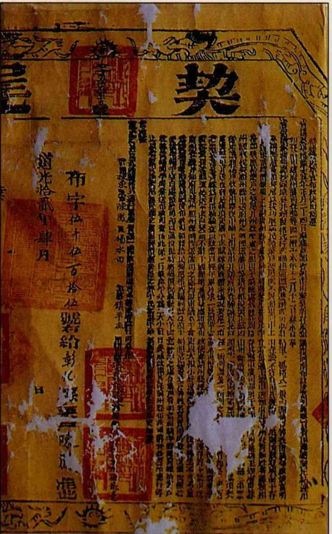 (上)這樣經官方公證登記的「尾契」又稱紅契,然而民間為了逃稅或違法買賣,通常是私下約定,稱為白契。(鐘金水提供)(鐘金水提供)