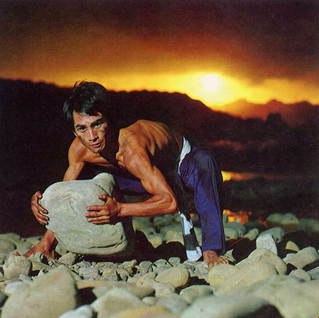 雲門舞集的林懷民在新店溪河床練舞的情形,此圖曾用作婦女雜誌的封面。