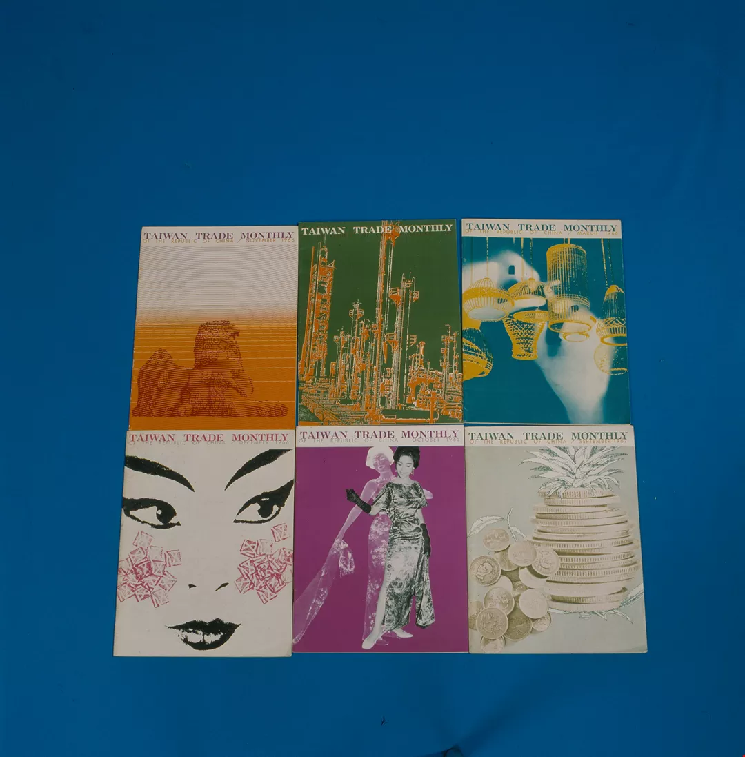 為了節省費用,每一次只用兩種顏色,但仍能設計出多彩多姿的書面,這是黃天縉為台灣貿易月刊所做的封面設計。