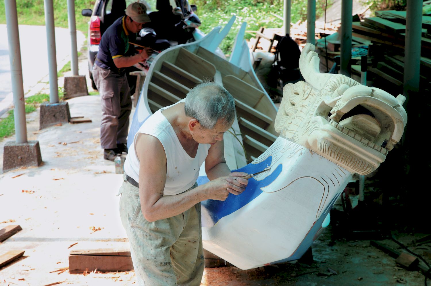 慶端午.作龍舟 文‧黃仲新 圖‧黃仲新 2015 6月 EN 日本語 分享: 74歲的國寶級傳統龍舟製造師傅劉清正,從18歲手作打造了第一艘龍舟,至今已逾250艘。 每逢端午前夕,都可以看見他老人家清瞿勇健的身影出現在士林三腳渡碼頭;以精緻的手藝,再造新的龍舟。 劉清正老先生專注地工作,默默地幫老文化注入新能量的同時,他的執著跟龍舟,已成為淡水河邊一幅動人的景緻。 分享: