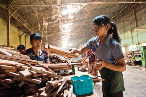 緬甸淳樸善良的民風,是外商投資的一大誘因,圖為在合板廠工作的緬甸婦女。