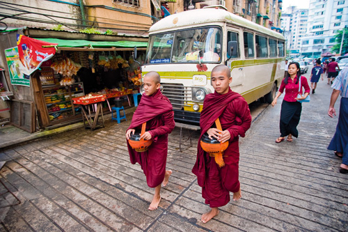 緬甸人篤信佛教,路上隨處可見和尚托缽化緣。傳聞緬甸男性一生之中至少要出家兩次。
