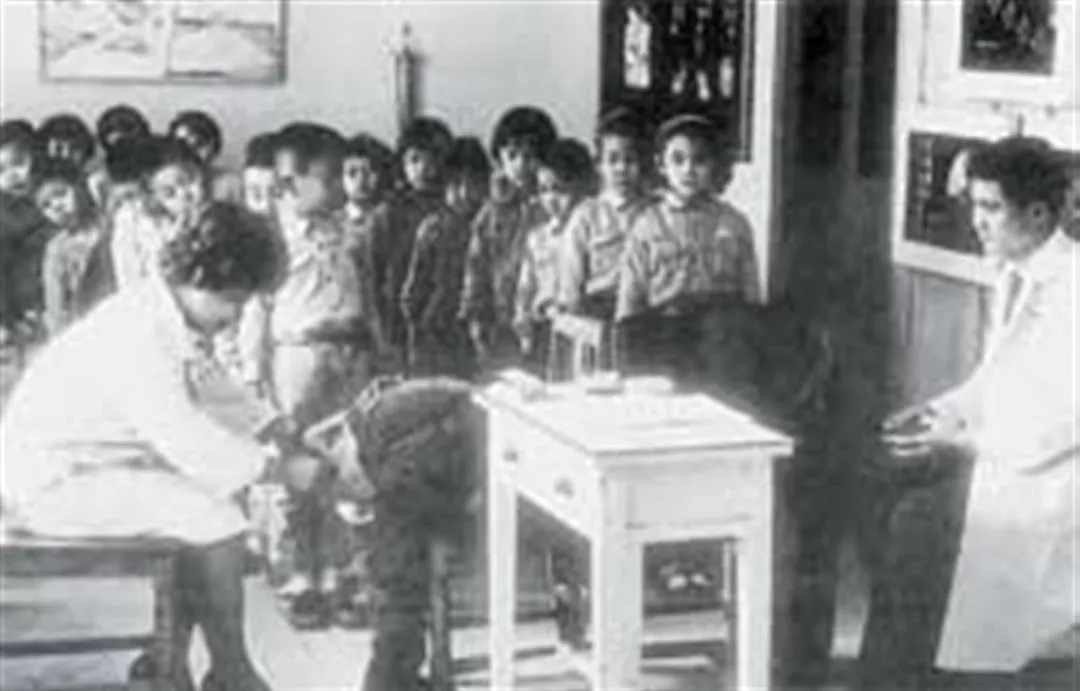 早年台灣兒童常見的疾病之一是體內寄生蟲,當時醫護人員輪流到各小學檢查學童肛門並取樣,再投藥驅蟲,防治效果良好。(轉載自衛生署出版《台灣地區公共衛生發展史》)