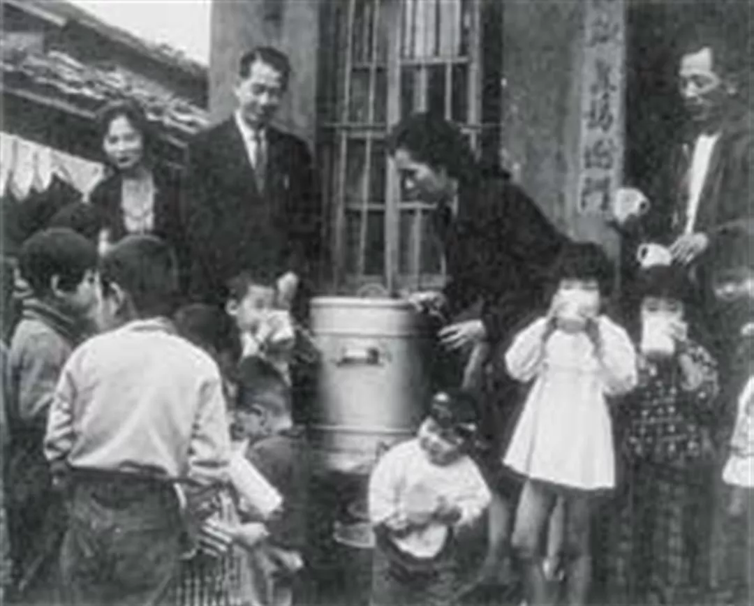 在台灣經濟尚未起飛的年代,聯合國兒童基金會曾在台灣鄉間設置牛奶站,為幼童補充營養。(轉載自衛生署出版《台灣地區公共衛生發展史照片選集》)