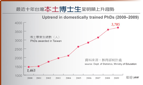 最近十年台灣本土博士生呈明顯上升趨勢/資料來源:教育部統計處