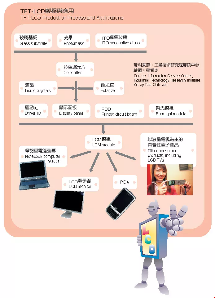 TFT-LCD製程與應用 資料來源:工業技術研究院資訊中心 繪圖:蔡智本