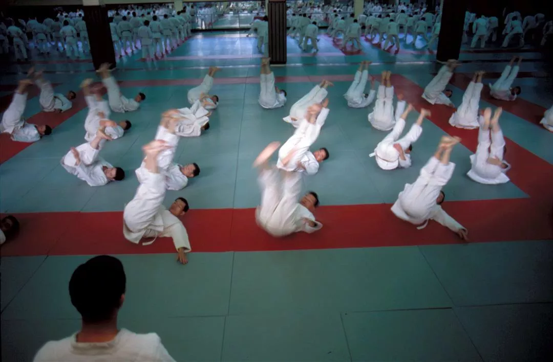 每週四小時的柔道課,學生盡力地跌呀、摔呀、壓制呀……,鍛鍊了強健的體魄。(鄭元慶)