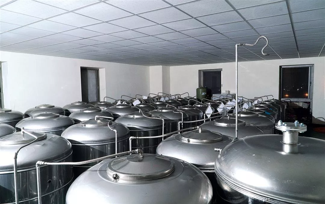 福釀坊以不鏽鋼發酵槽配合每日的實驗數據 監測酒化、醋化程度,讓釀醋走向科學化的 企業管理。(福釀坊提供)