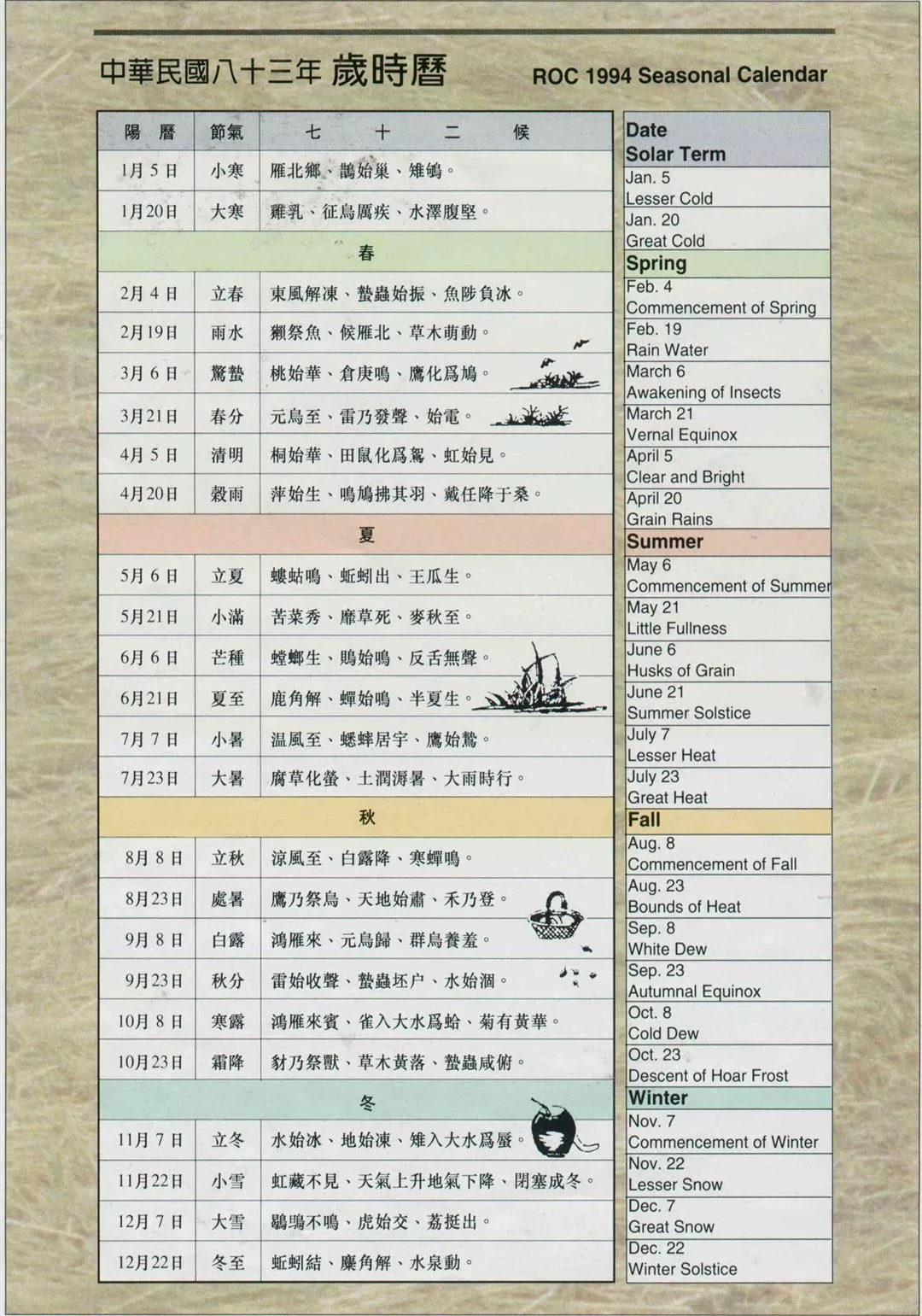在一家裝潢摩登的書店裡,一位客人要找一些有關中國「節氣」的資料,書店小姐卻拿來幾本談民俗「節慶」的書;等搞清楚「節氣」不是賞月的中秋、也不是吃粽子的端午,而是驚蟄、芒種、白露、霜降,年輕的小姐一臉迷惑,表示沒這種書。