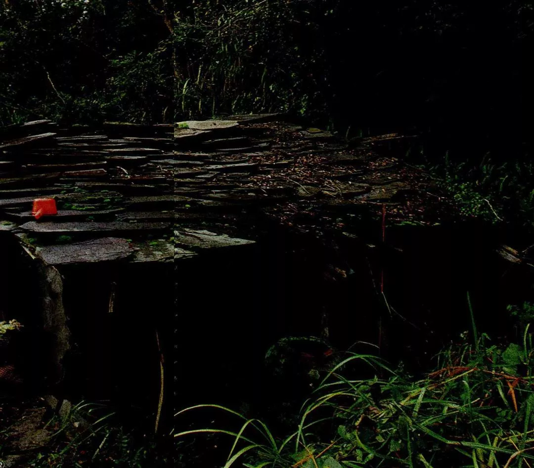 圖2.:古道東段的叢林中,有廢棄的山胞住屋,屋頂建材也是粘板岩(歐陽台生提供)(歐陽台生提供)