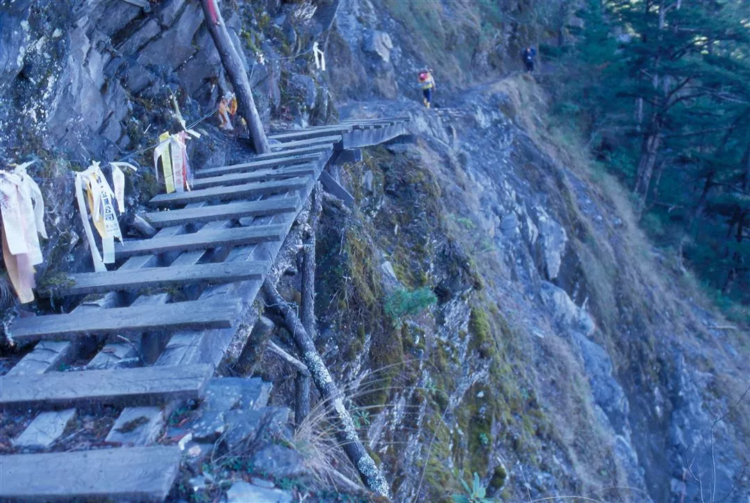 圖2.:玉山國家公園管理處,已經開始整修八通關古道上岌岌可危的棧道。(鐘永和/陳仲玉)