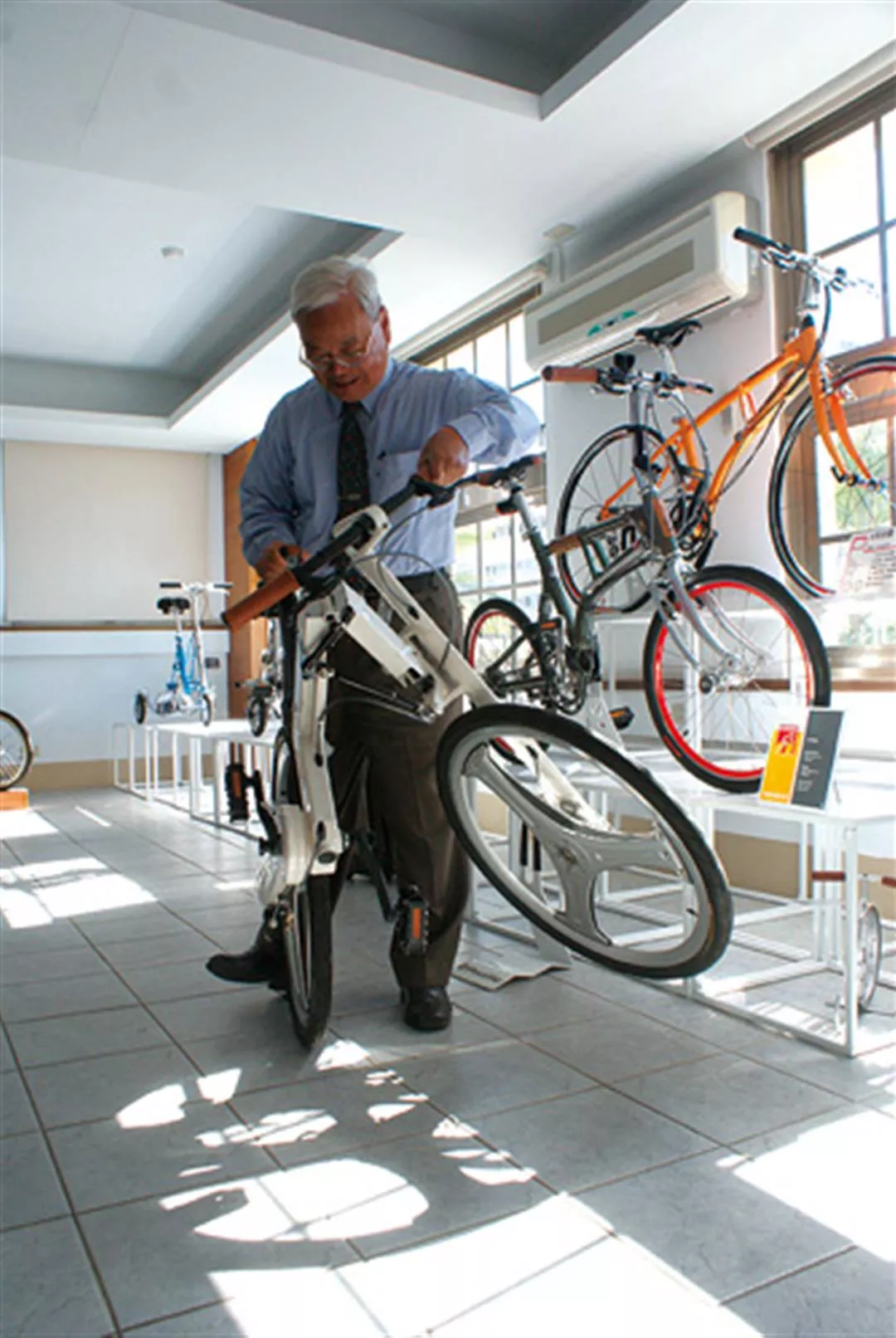 也是環保的原因,太平洋仍採用鋁合金材質,堅持不用目前最輕、最夯但卻不能回收的碳纖維做腳踏車。「對自行車來說,重量減輕半公斤、一公斤不是那麼重要,更何況,太平洋生產的摺疊車是可以抓著座墊或把手,像行李箱一樣牽著走的。」
