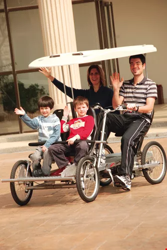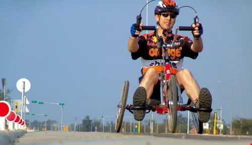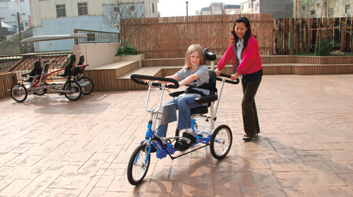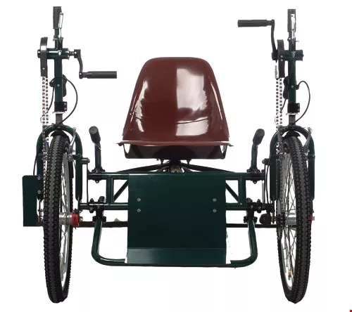 聯合國委託太平洋設計製造的非洲地雷區用車,以手動取代腳踏功能,方便下肢障礙者騎乘,下面厚厚的鋼板則可防止未爆彈二度傷害。