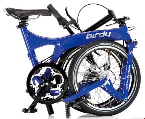 此外,不同於一般摺疊車將前輪摺向後輪,中間的車架主管也因頻繁對折而可能影響強度,甚至有騎到一半「關節」滑脫之虞,Birdy採用的是前後輪都往內收的三疊式設計,對車體強度的犧牲較小,且摺疊、展開都能在十幾秒內輕鬆完成,再加上它以輕巧方便為訴求(重量只有10公斤、摺疊後體積為72×39×60cm3),因此命名Birdy。
