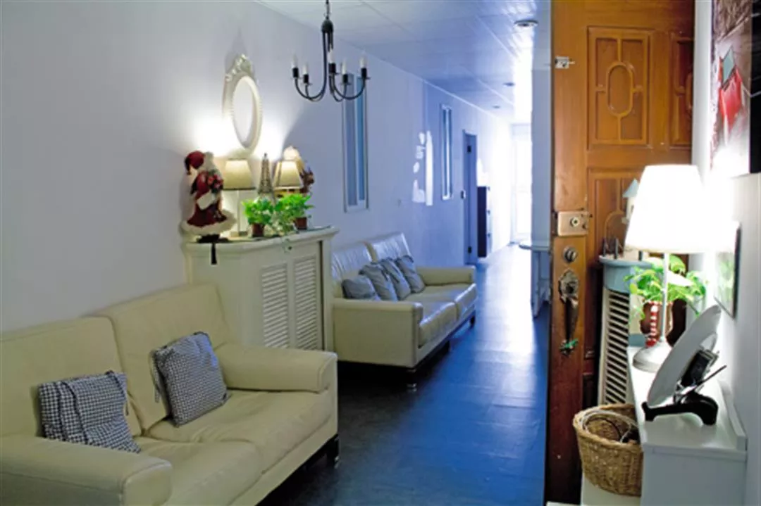 走過狹窄的舊式樓梯間,接待處位於2樓的橙舍,樓高4層,提供1~3人及4~8人的合住房,團體房一人每天平均價位約為500元台幣,每個樓層都有數間衛浴間、洗衣與曬衣的空間、冰箱,以及小客廳與無線上網的設備,每張床邊也有電源插座,麻雀雖小,五臟俱全,很簡單、很溫暖,深獲外籍背包客的好評,每月住房率平均達80%。