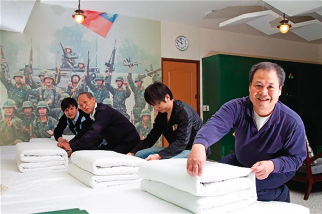 西門町附近的國軍英雄館,內部裝潢成戰地風情,還有「摺豆干」棉被比賽,喚起不少男性住客的軍旅回憶。