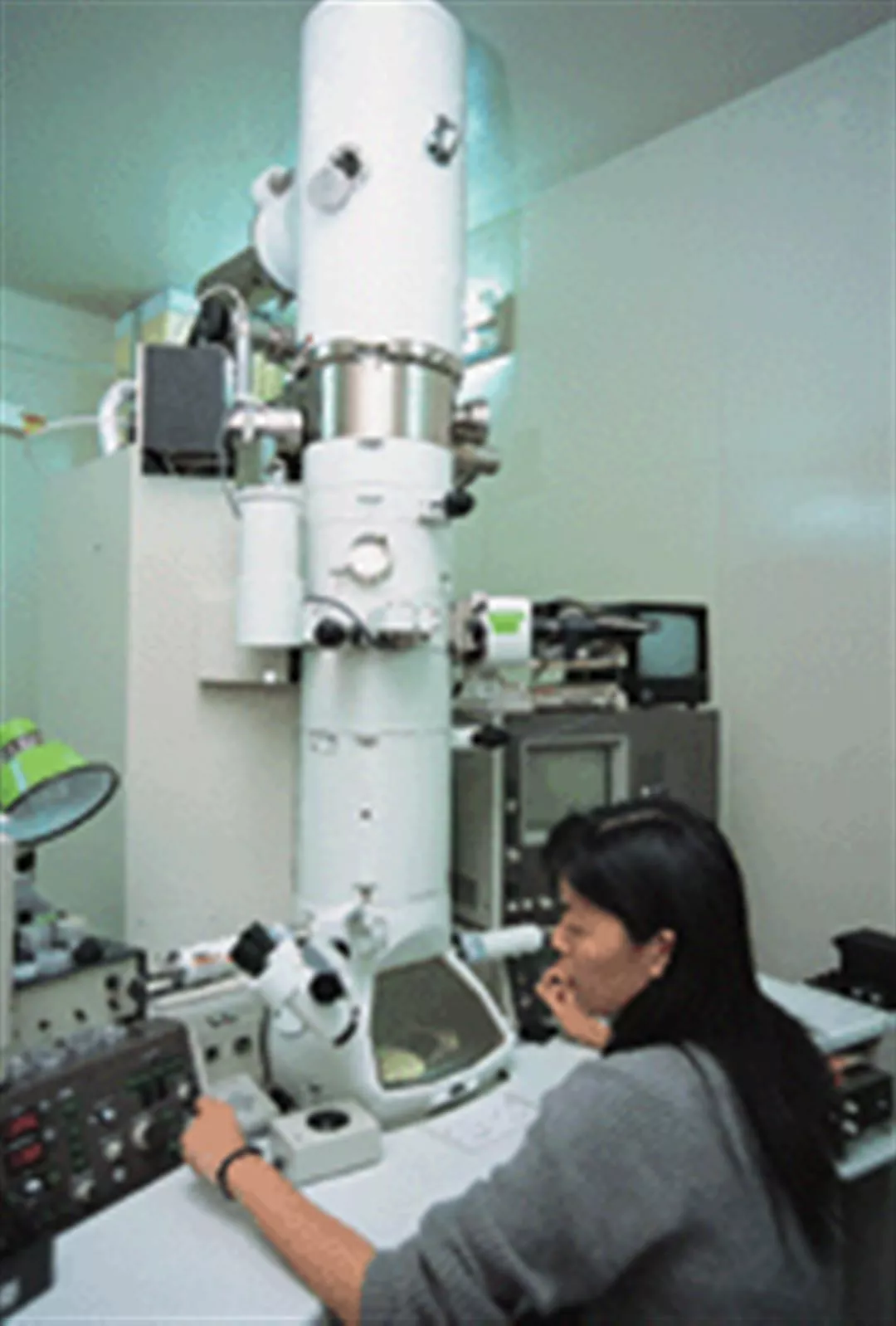 這座穿透式電子顯微鏡,不僅可以觀察到奈米級物品,還可以透視樣品表面下深層的原子排列,只是須在黑暗中操作,難度很高。