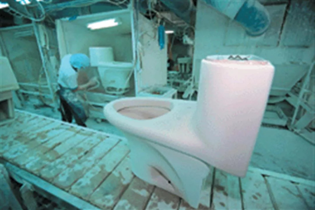 桃園八德鄉間,偌大的和成衛浴設備廠裡,一排噴漆工人正在為馬桶噴灑塗料。傳統塗料噴完後,工人又換了一管噴嘴,小心翼翼地再把馬桶內外的重要部位噴上一層粉紅釉料,有了這層紅袍加身,再經過一千兩百度的高溫窯燒後,「奈米馬桶」就此出爐,一套售價可以比傳統式的高出三千元,在衛浴界引發一陣跟進熱潮。