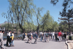 楊柳樹下,清風徐徐,北大是學術殿堂,也是著名的觀光景點。(張良綱攝)