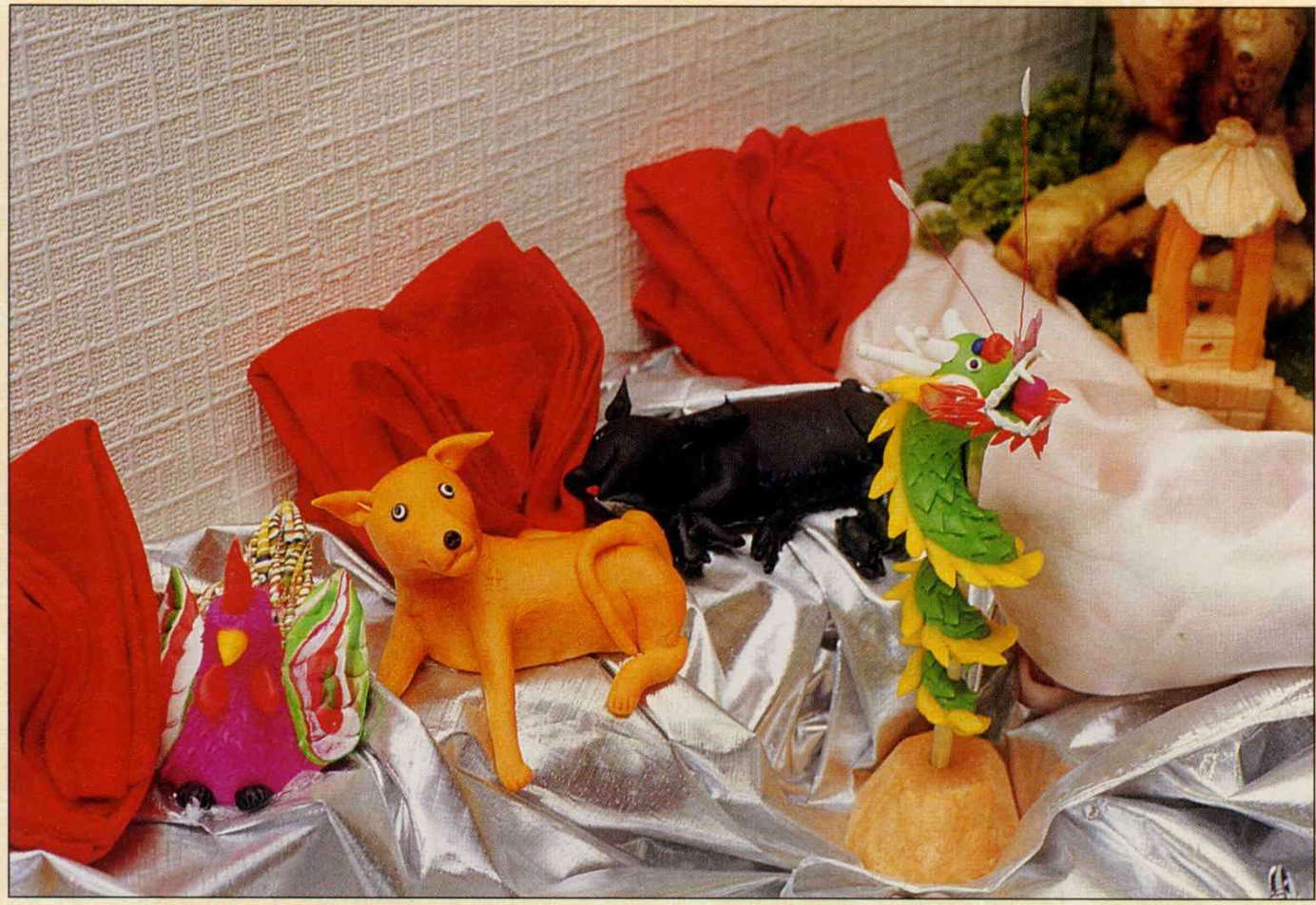 以十二生肖為主題材的捏麵人,狗兒也在其中。(張良綱攝)(張良綱攝)