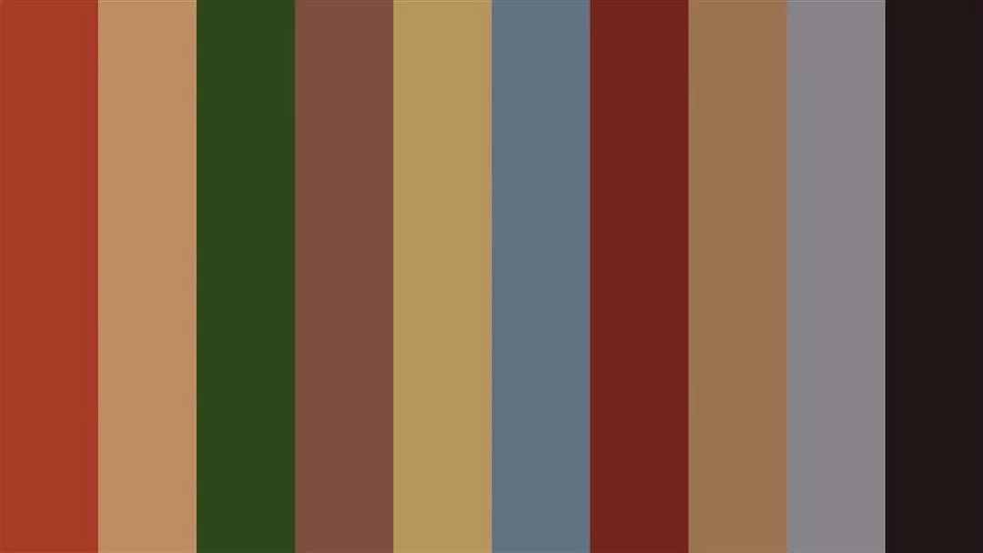 「學學台灣文化色彩」網站收藏了台灣八百多位藝術家、八千多件作品,圖為分析陳澄波的畫作〈淡水〉的色彩組成,製成色票。(學學文化創意基金會提供)